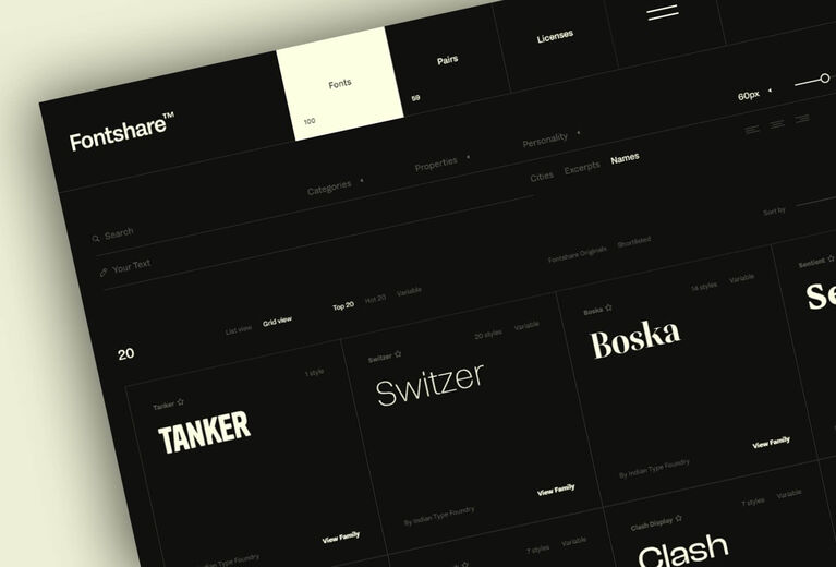 Fontshare.com ist eine Online-Plattform, die es ermöglicht, Schriftarten kostenlos herunterzuladen und zu verwenden. Die Plattform wurde von einer Gruppe von Schriftarten-Designerinnen- und Designern gegründet, die den Zugang zu hochwertigen Schriftarten für alle verbessern wollten. Fontshare.com hat eine breite Auswahl an Schriftarten für den persönlichen und kommerziellen Gebrauch, die von talentierten Designerinnen- und Designern auf der ganzen Welt erstellt wurden.